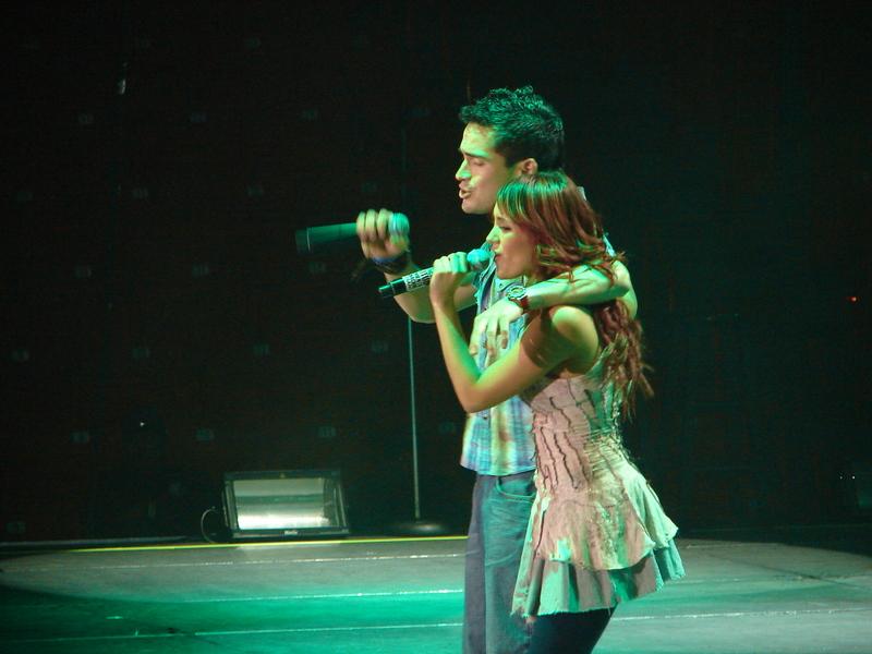 Last concerts of Tour Generacion in USA. They are still wearing their ripped grunge outfits, this time Anahi is wearing black ripped longsleeve with leggings and patchwork belt/overskirt, Dulce has some white blouse and grey knee lenght skirt, Maite is wearing white shirt blouse and patchwork mini skirt with dark colour leggings. I don't know if there were second outfits for this show.