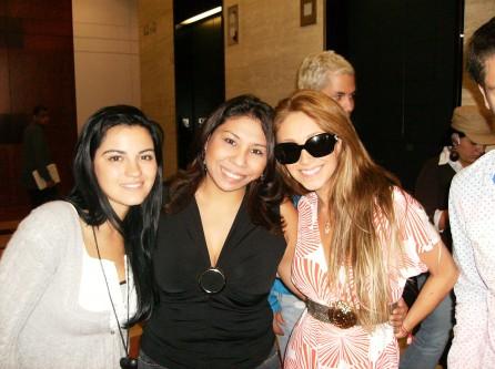 Anahi was wearing lovely white dress with red printed flowers and big black sunglasses. Dulce chose jeans, printed blouse and olive green cardigan. Maite wore casual grey jeans and sweater with white top underneath.