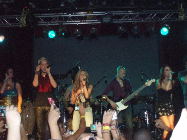 For this show Anahi wore casual checked halterneck top and jeans. Dulce wore black skull print mini skirt, black tank top and red socks. Maite chose turquise sequin tunic, black waist corset and black leggings. I love these pics from before the show <3